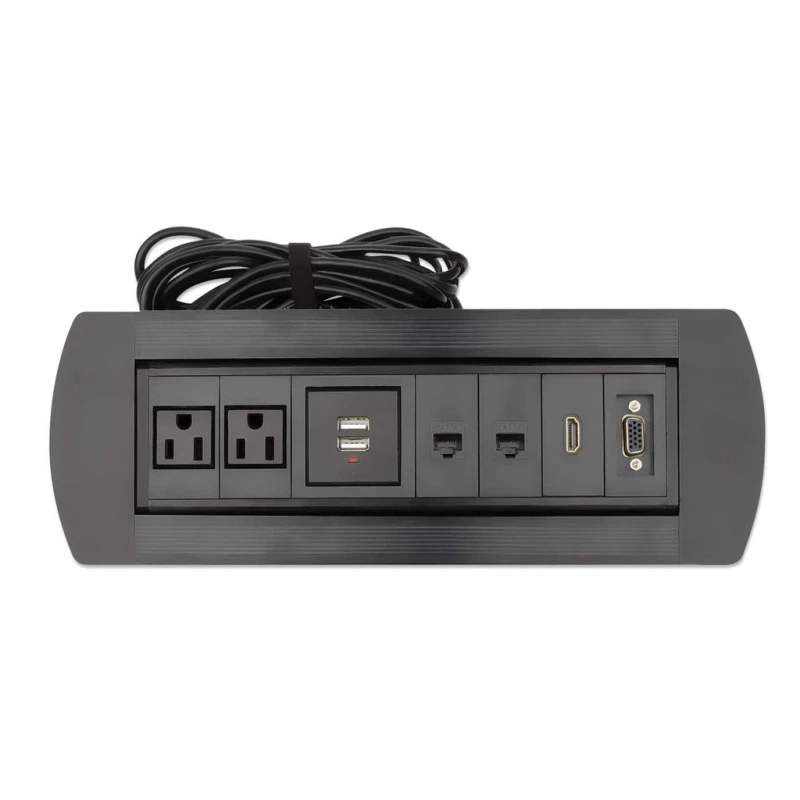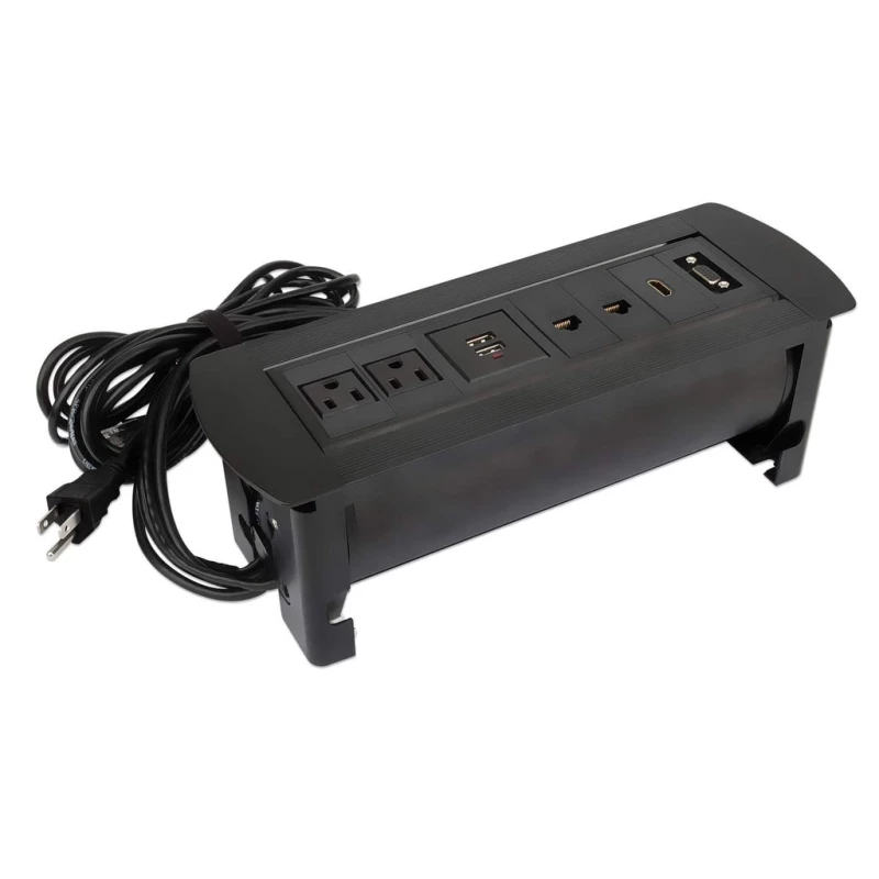 Manhattan Caja de conexión para mesa. Longitud de cable: 1.5 m, Colocación compatible: Interior, Color del producto: Negro. Cantidad de salidas AC: 2 salidas AC. Voltaje de entrada AC: 100 - 240 V, Frecuencia de entrada AC: 50 - 60 Hz, Funciones de protección de poder: Sobrecorriente, Sobrecalentamiento, Sobrecarga. Ancho: 308 mm, Profundidad: 110 mm, Altura: 104 mm. Número de productos incluidos: 1 pieza(s)