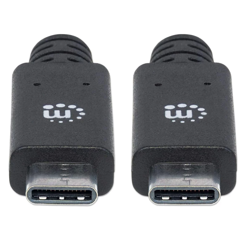 Manhattan Cable USB Tipo C de Súper Velocidad+. Longitud de cable: 1 m. Conector 1: USB C, Conector 2: USB C, Versión USB: USB 3.2 Gen 2 (3.1 Gen 2), Rango de transferencia de datos (max): 10 Gbit/s, Contactos del conector chapado: Níquel, Color del producto: Negro, Protegida magnéticamente