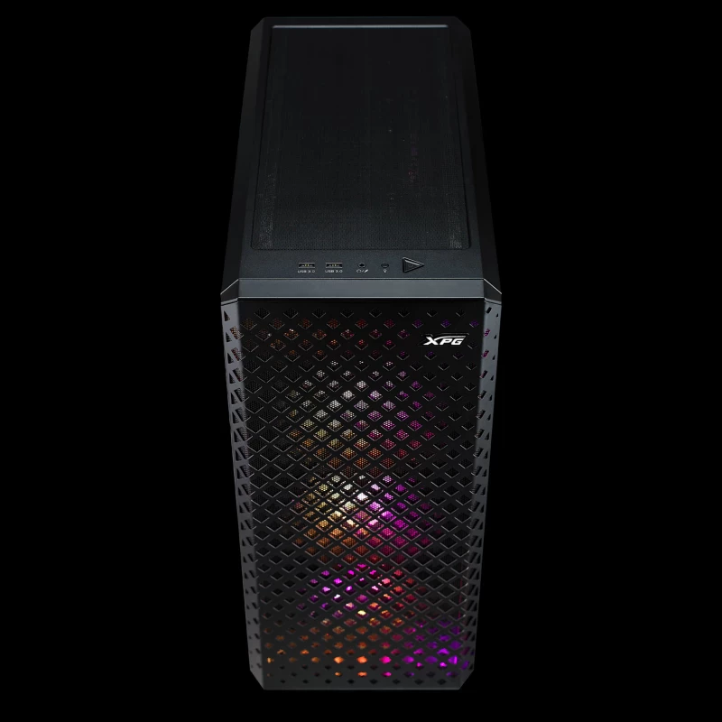 El chasis de media torre XPG DEFENDER PRO está disponible en los colores blanco y negro. Su diseño de corte fino geométrico MESH es estéticamente elegante y aerodinámicamente eficiente para mejorar la entrada del flujo de aire.