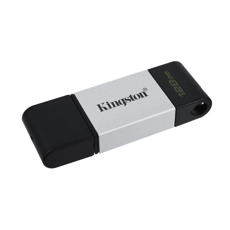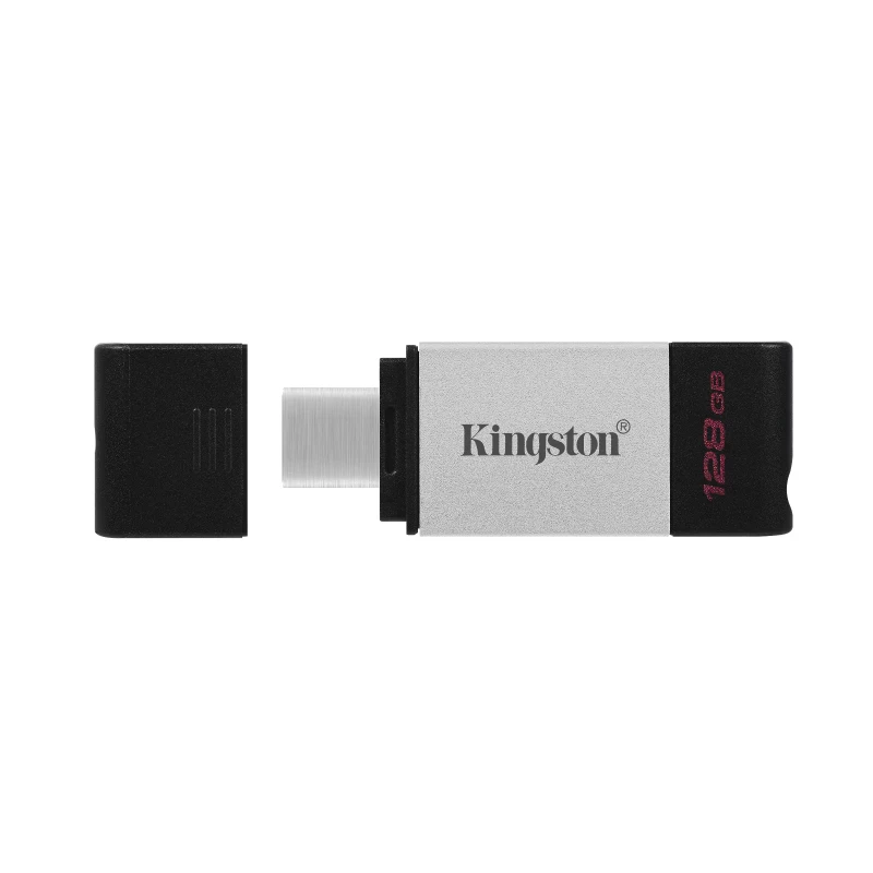 Kingston Technology DataTraveler 80. Capacidad: 128 GB, Interfaz del dispositivo: USB Tipo C, Versión USB: 3.2 Gen 1 (3.1 Gen 1), Velocidad de lectura: 200 MB/s, Velocidad de escritura: 60 MB/s. Factor de forma: Tapa. Peso: 4.134 g. Color del producto: Negro, Plata