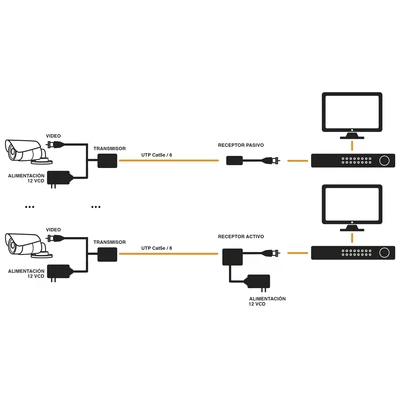 Epcom Kit de transceptores activos TURBO HD. Convierte 36/24 Vcc a 12 Vcc regulados, a través de cable UTP Cat5e / 6. Transmision de 200 m (Revisar tabla de resoluciones )
