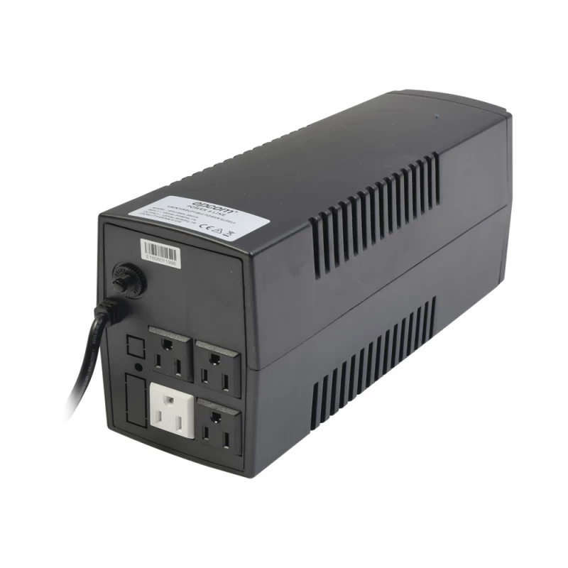 Epcom EPU850L. Topología UPS: Línea interactiva, Capacidad de potencia de salida (VA): 0.85 kVA, Potencia de salida: 510 W. Tipo de salida AC: NEMA 5-15R, Cantidad de salidas AC: 4 salidas AC. Capacidad de la batería: 8 Ah, Voltaje de la pila: 12 V, Tiempo de recarga de la batería: 8 h. Factor de forma: Compacto, Color del producto: Negro. Ancho: 280 mm, Profundidad: 100 mm, Altura: 140 mm
