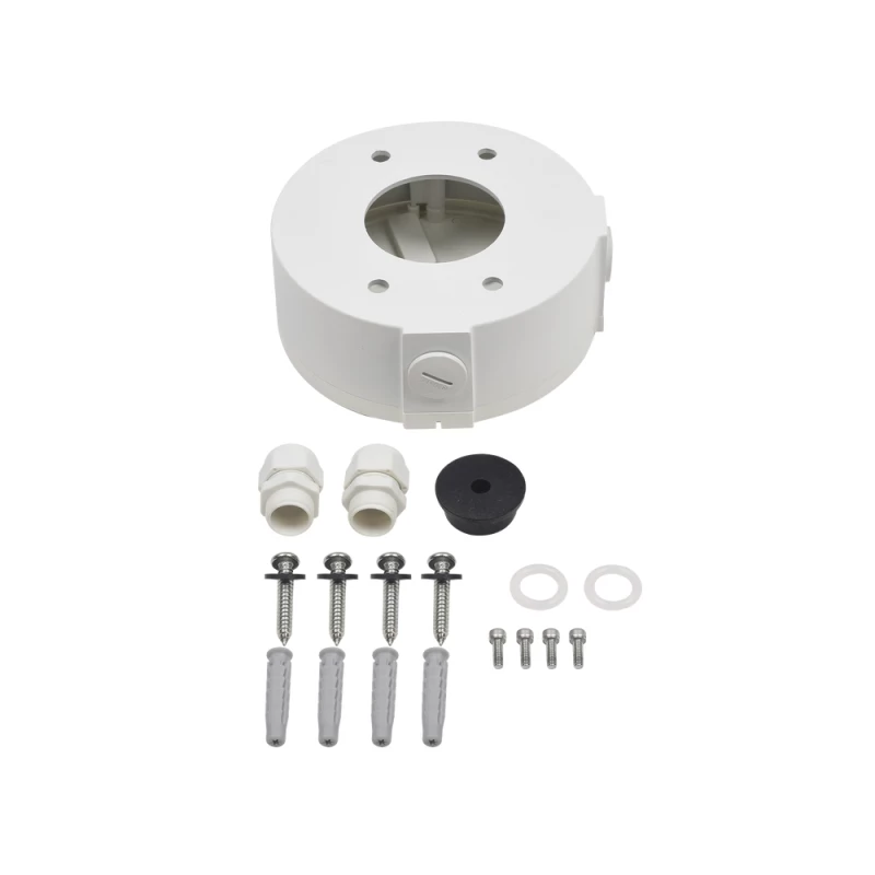 Syscom Caja de Conexiones Universal / Uso en Interior / Fabricada en Metal / Color Blanco / Uso en Bala - Domo - Turret
