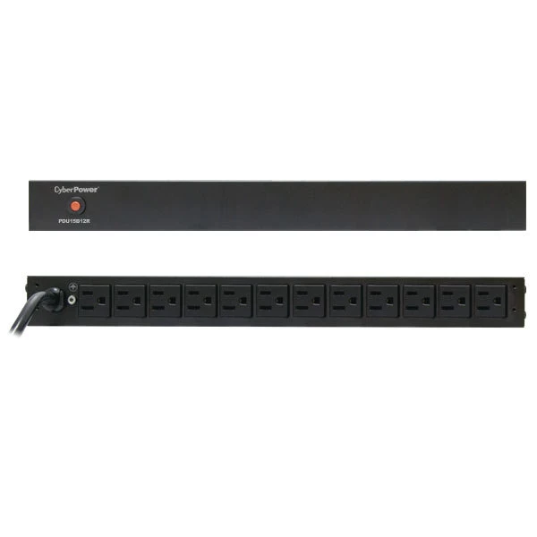 CYBERPOWER PDU Básico Para Distribución de Energía, Con 12 Tomas NEMA 5-15R Traseras, 1UR, 15 Amp, 120 Vca