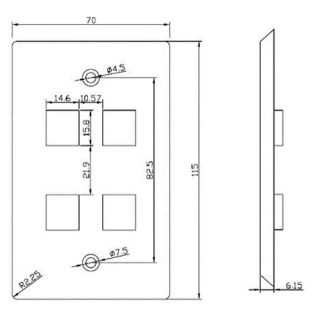 LinkedPRO LP-FP-19. Tipo de enchufe: RJ-45, Color del producto: Blanco, Certificación: UL, CE, ETL, ANSI, TIA, EIA-568-C.2. Ancho: 70 mm, Profundidad: 6.15 mm, Altura: 115 mm. Cantidad por paquete: 1 pieza(s)