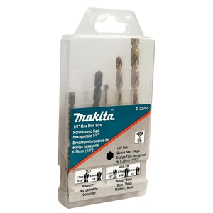 Makita Juego de 5 Brocas con Inserción Hexagonal de 1/4". De concreto: 3/16" y 1/4". Para metal: 1/8", 3/16" y 1/4".