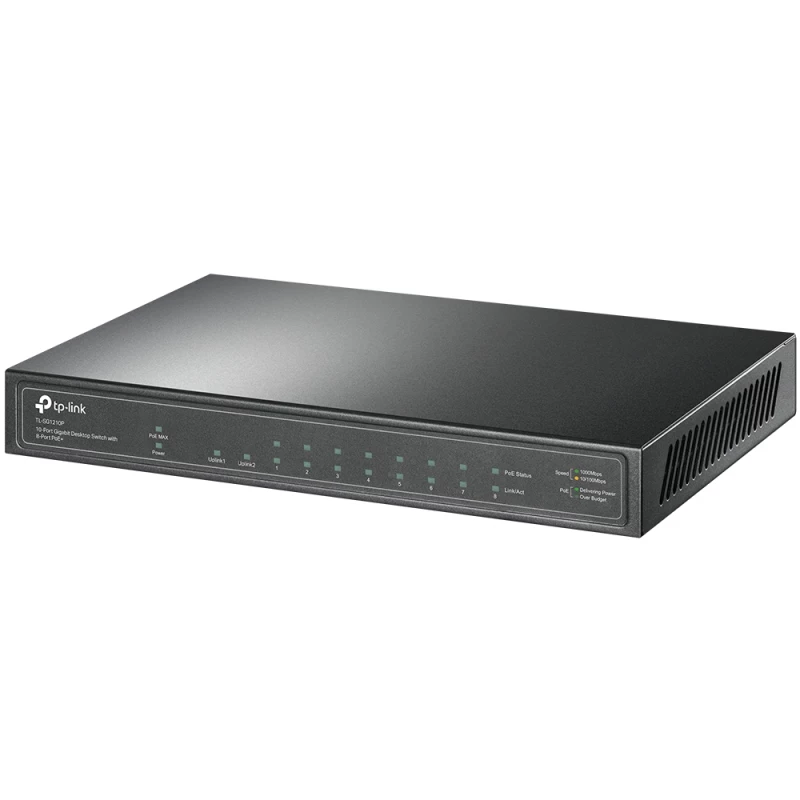 Tp-Link Switch de escritorio PoE+, no Administrable 8 puertos 10/100/1000 Mbps + 1 puertos 10/100/1000 Mbps (Uplink) + 1 puerto SFP, 63W