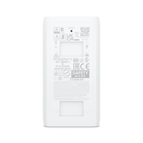 Ubiquiti U-POE-AF. Tipo de interfaz ethernet: Gigabit Ethernet, Ethernet LAN, velocidad de transferencia de datos: 1000 Mbit/s. Color del producto: Blanco, Certificación: CE, FCC, IC, UL. Energía sobre Ethernet (PoE): 48 V, Voltaje de entrada: 100-240 V, Frecuencia de entrada: 50/60 Hz. Ancho: 46 mm, Profundidad: 86 mm, Altura: 33 mm