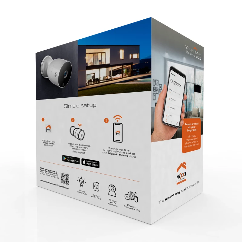 Nexxt Solutions NHC-O630, Cámara de seguridad IP, Exterior, Inalámbrico, Interno, Pared, Negro, Blanco