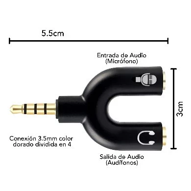 BRobotix 181802-2. Color del producto: Negro, Conector 1: 3.5mm, Conector 2: 2x3.5mm. Ancho: 30 mm, Longitud: 55 mm