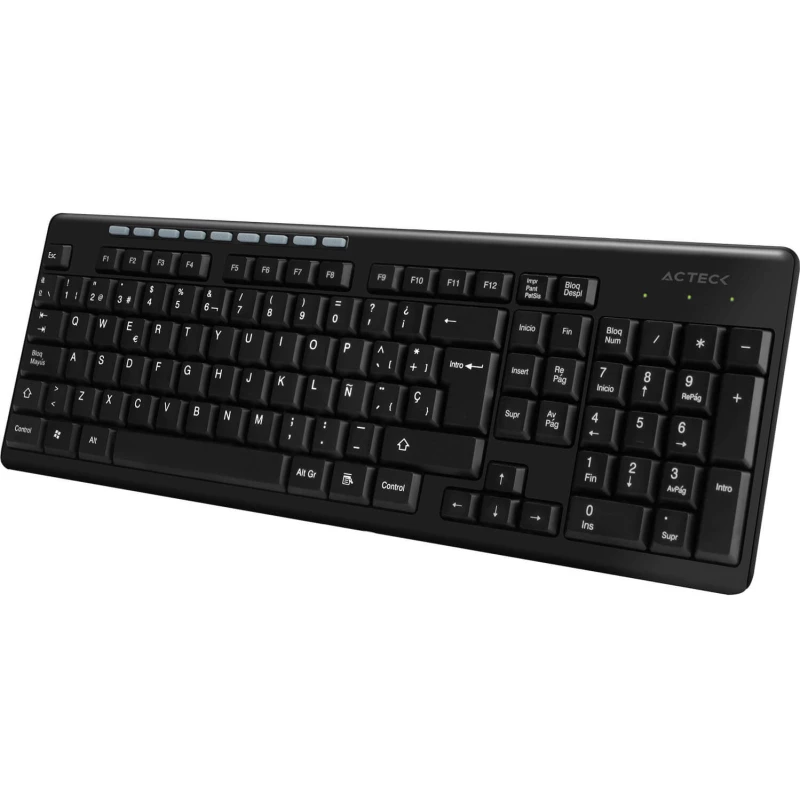 Teclado Acteck TM100, Tamaño completo (100%), RF inalámbrica + USB, QWERTY, Negro