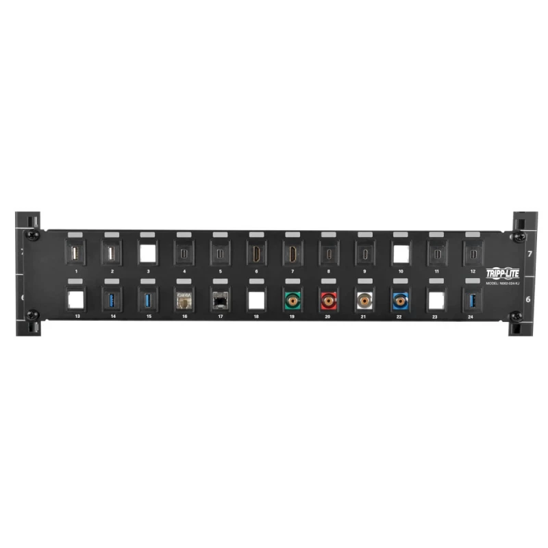 Tripp Lite N062-024-KJ Panel de Conexiones sin Blindaje RJ45 Keystone / Multimedia de 24 Puertos de 2U Para Instalación en Rack, Ethernet RJ45, USB, HDMI, Cat5e / 6, Negro, Montaje en bastidor, 1U, 482.6 mm, 83.8 mm, 12.7 mm