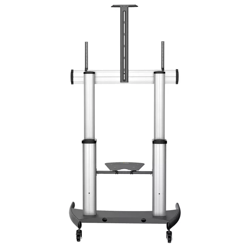 StarTech.com Soporte Móvil para TV - Carro de Alta Resistencia para TV Pantalla Plana de 60 a 100" (100kg) - Stand de Piso para TV con Altura Ajustable y Ruedas - Base Universal con Charolas para TV. Capacidad máxima de peso: 100 kg, Tamaño mínimo de pantalla: 152.4 cm (60"), Tamaño máximo de pantalla: 2.54 m (100"), Montaje VESA mínimo: 200 x 200 mm, Montaje VESA máximo: 1000 x 600 mm. Rango de ajustes de altura: 1200 - 1700 mm, Ángulo de inclinación: -10 - 5°. Color del producto: Negro, Plata