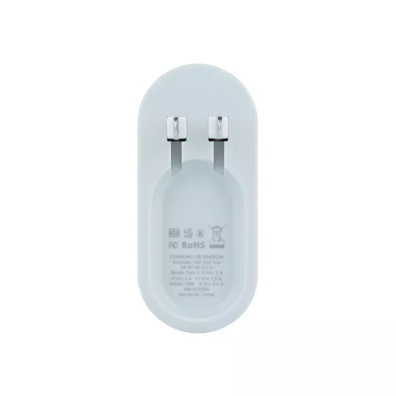 Mobifree MB-923378. Tipo de cargador: Interior, Compatibilidad del cargador: Universal. Voltaje de entrada: 100 - 240 V, Voltaje de salida máximo: 12 V. Cantidad de puertos USB 2.0: 3, Carga rápida. Color del producto: Blanco