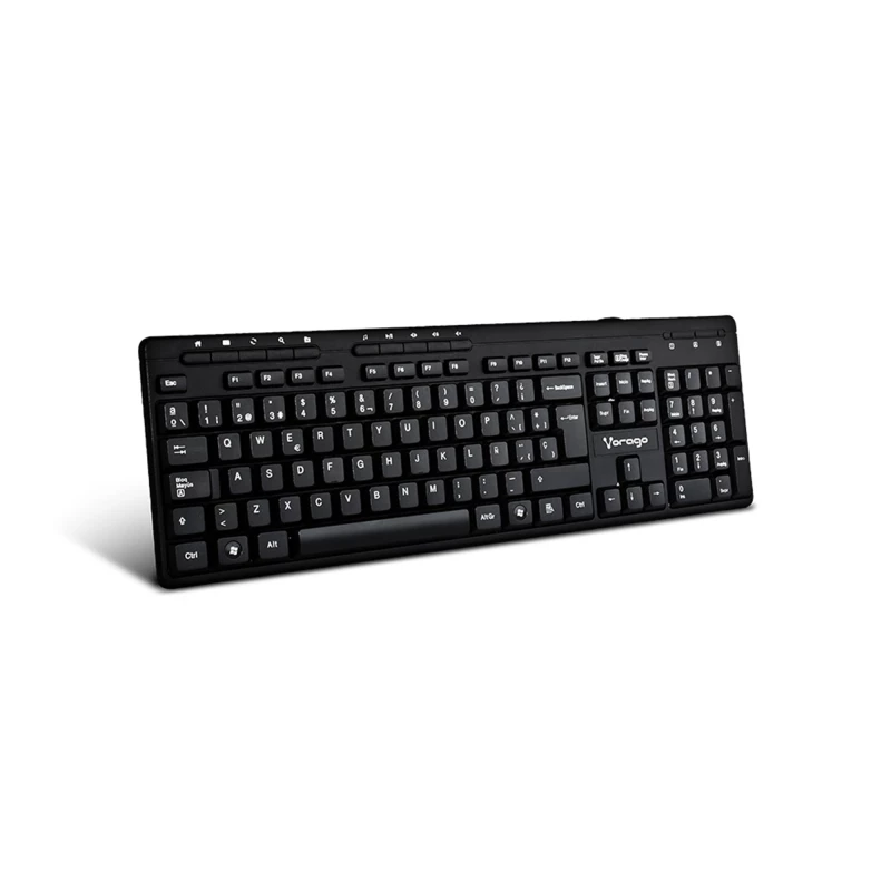 Teclado Vorago KMS-104, Tamaño completo (100%), Alámbrico, QWERTY, Negro, Ratón incluido