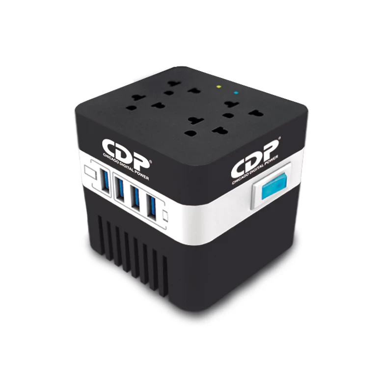CDP RU AVR 604. PDU tipos: Básico, Capacidad del rack: 0U, Color del producto: Negro, Blanco. Cantidad de salidas AC: 4 salidas AC, Tipo de salida AC: NEMA 5–15R, Conector: NEMA 5-15P. Longitud de cable: 1 m. Voltaje nominal de entrada: 92-270 V, Frecuencia de entrada AC: 50 - 60 Hz, Voltaje nominal de salida: 120-220 V. Dimensiones (Ancho x Profundidad x Altura): 95 x 95 x 95 mm