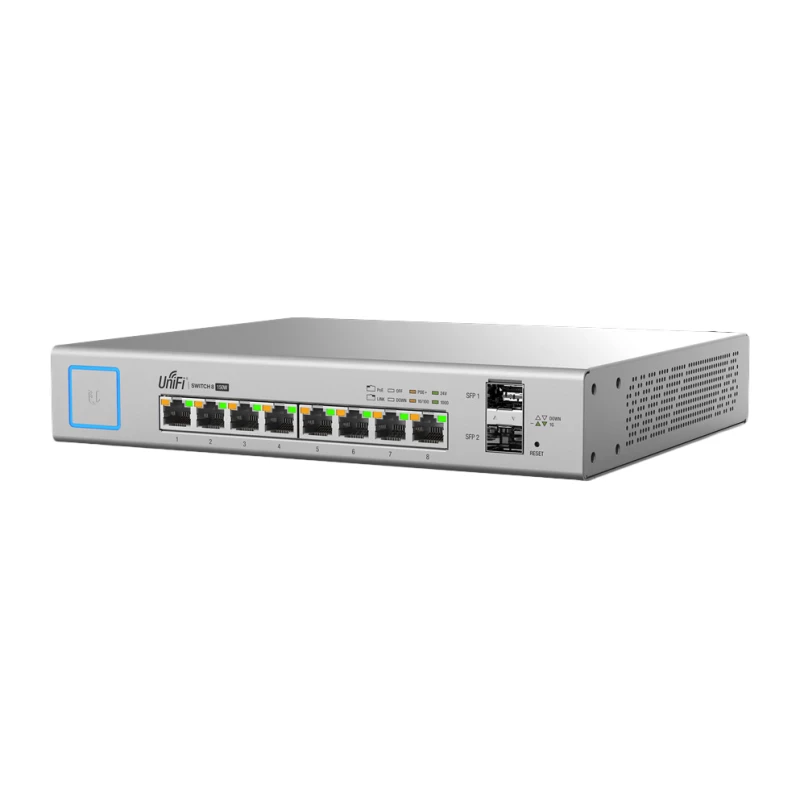 Ubiquiti Switch UniFi Administrable de 8 Puertos Gigabit PoE+ 802.3at/af y PoE Pasivo 24V.