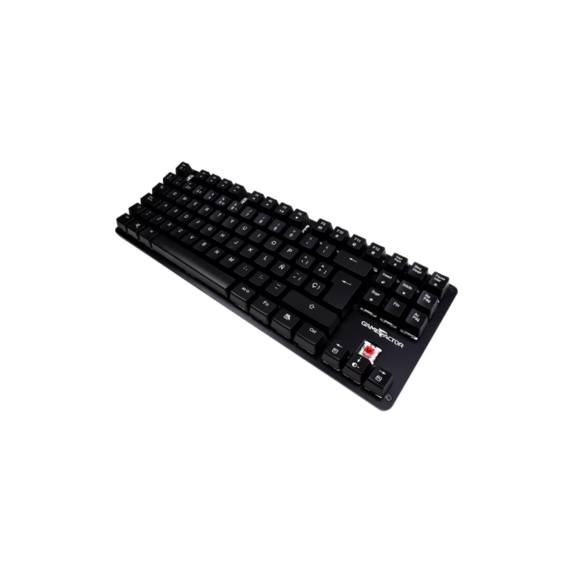 Game Factor KBG500. Formato del teclado: Tamaño completo (100%). Estilo de teclado: Derecho. Tecnología de conectividad: Alámbrico, Interfaz del dispositivo: USB, Interruptor del teclado: Interruptor mecánico, Diseño de teclado: QWERTY, Teclado, cantidad de teclas: 88. Tipo de retroiluminación: LED RGB. Longitud de cable: 1.8 m. Uso recomendado: Juego. Color del producto: Negro