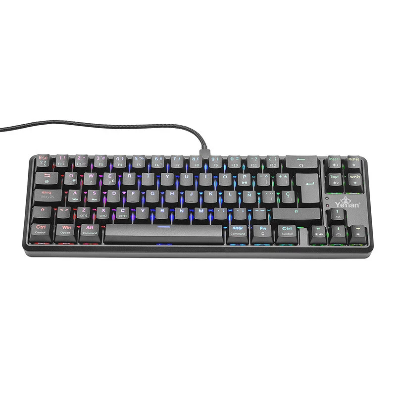 Yeyian YTM-28209R. Formato del teclado: Tamaño completo (100%). Estilo de teclado: Derecho. Tecnología de conectividad: Alámbrico, Interfaz del dispositivo: USB, Interruptor del teclado: Interruptor mecánico, Diseño de teclado: QWERTY. Tipo de retroiluminación: LED RGB. Uso recomendado: Juego. Color del producto: Negro