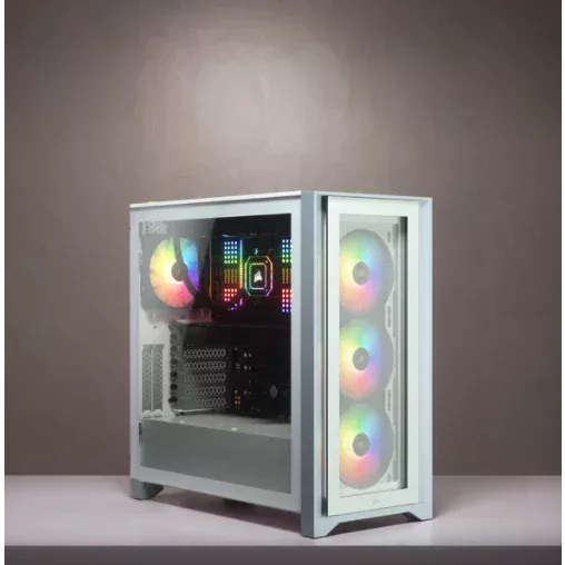 Gabinete Corsair iCUE 4000X RGB, Midi Tower, PC, Blanco, ATX, EATX, Micro ATX, Mini-ITX, Plástico, Acero, Vidrio templado, Juego
