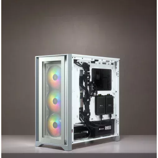 Corsair iCUE 4000X RGB. Factor de forma: Midi Tower, Tipo: PC, Color del producto: Blanco. Ubicación de fuente de alimentación: Fondo. Ventiladores frontales instalados: 3x 120 mm, Diámetro de ventiladores frontales soportados: 120,140 mm, Diámetro de ventiladores traseros soportados: 120 mm. Tamaños de disco duro soportados: 3.5", Factor de formato SSD: 2.5". Ancho: 230 mm, Profundidad: 453 mm, Altura: 466 mm