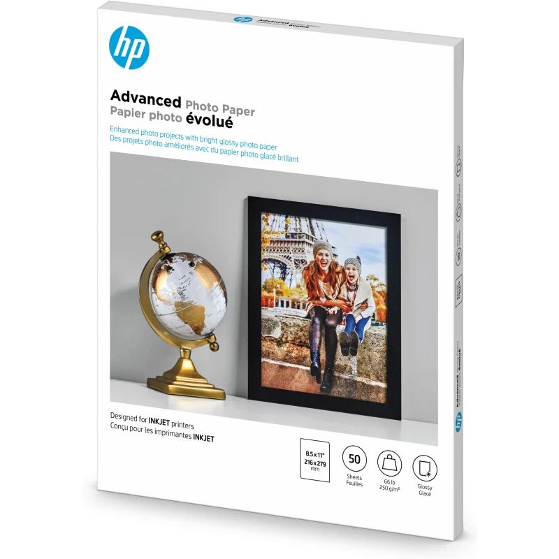HP Advanced Photo Paper, Glossy, 65 lb, 8.5 x 11 in (216 x 279 mm), 50 sheets
