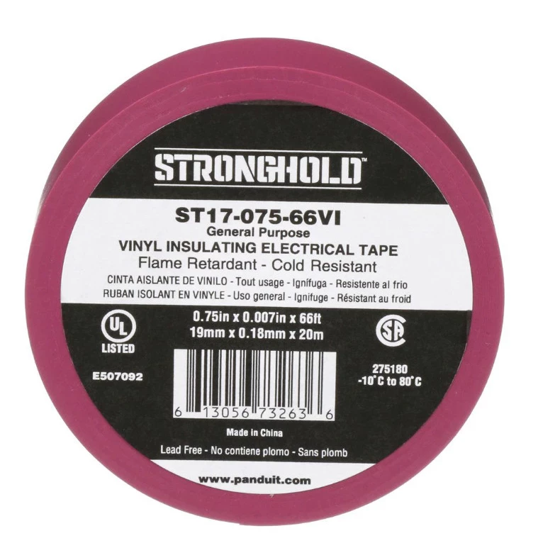 PANDUIT Cinta Eléctrica STRONGHOLD para Aislar, de PVC, Uso General Reparación y Mantenimiento, Grosor de 0.18mm (7 mil), Ancho de 19mm, y 20.12m de Largo, Color Violeta