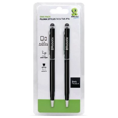 BRobotix 6000403. Compatibilidad de los dispositivos: Tableta, Compatibilidad de marca: Cualquier marca, Color del producto: Negro. Peso: 37.3 g, Altura: 136 mm. Cantidad por paquete: 2 pieza(s), Tipo de empaque: Blister, Ancho del paquete: 87 mm