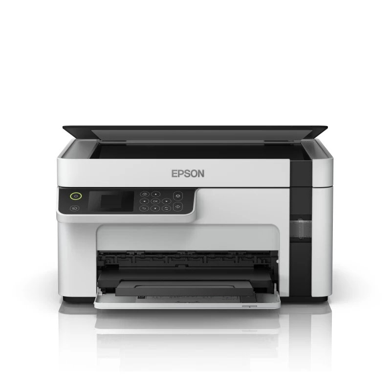 Epson EcoTank M2120. Tecnología de impresión: Inyección de tinta, Impresión: Impresión en blanco y negro, Resolución máxima: 1440 x 720 DPI. Copiando: Copias en blanco y negro, Resolución máxima de copia: 600 x 600 DPI. Escaneando: Escaneo simple, Resolución óptica de escáner: 1200 x 2400 DPI. Tamaño máximo de papel ISO A-series: A4. Wifi. Impresión directa. Color del producto: Blanco