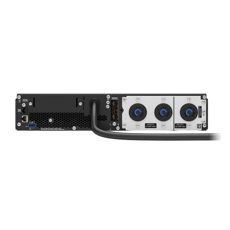 APC SRT3000RMXLT. Topología UPS: Doble conversión (en línea), Capacidad de potencia de salida (VA): 3 kVA, Potencia de salida: 2700 W. Tipo de salida AC: NEMA L6-20R, NEMA L6-30R, Conector: NEMA L6-20P, Cantidad de salidas AC: 3 salidas AC. Tecnología de batería: Sealed Lead Acid (VRLA), Capacidad de la batería: 497 Ah, Tiempo típico de respaldo a carga completa: 4 min. Factor de forma: Montaje en rack/Torre o Montaje en bastidor/Torre, Color del producto: Negro, Material de la cubierta: Acero. Certificados de cumplimiento: RoHS