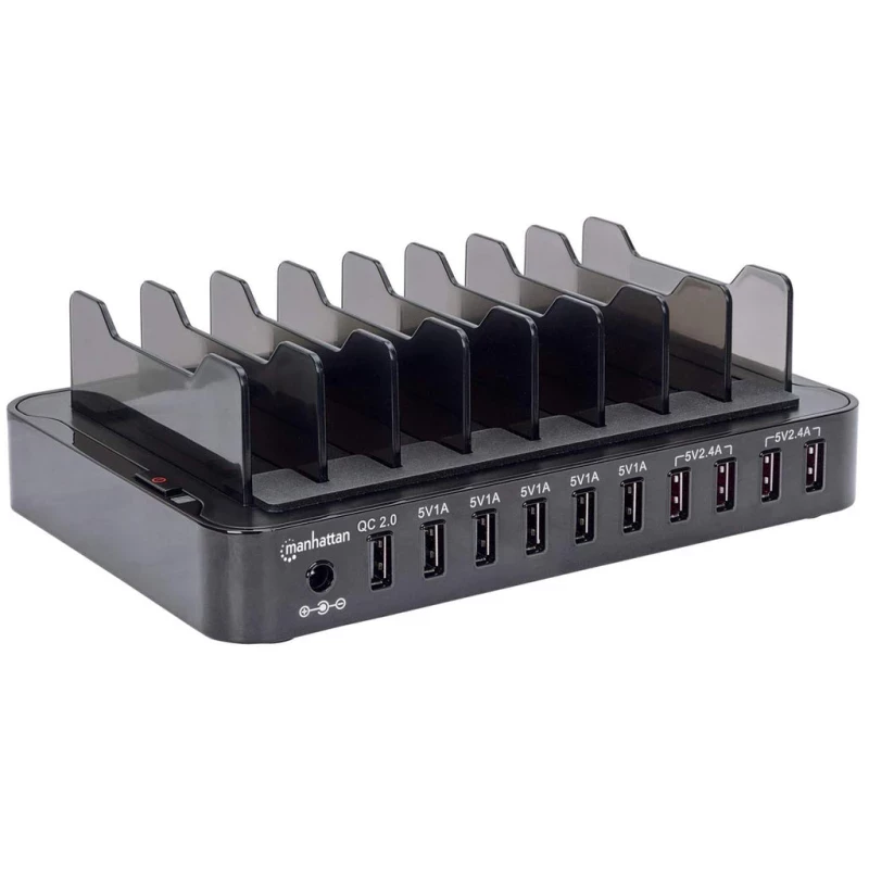 Manhattan Estación de carga con 10 puertos USB, Acrilonitrilo butadieno estireno (ABS), Negro, Corriente, CUL, RoHS2, CE, TUV, FCC, 110 - 240 V, 2 A