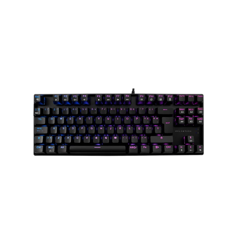 Balam Rush BR-932707. Formato del teclado: 80%, Tecnología de conectividad: Alámbrico, Interfaz del dispositivo: USB, Interruptor del teclado: Interruptor de llave optomecánica. Tipo de retroiluminación: LED RGB. Uso recomendado: Juego. Color del producto: Negro
