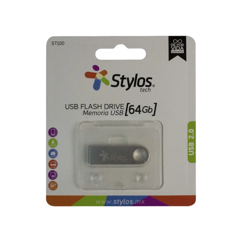 Stylos STMUSB4B. Capacidad: 64 GB, Interfaz del dispositivo: USB Type-A / USB Type-C / Micro-USB, Versión USB: 2.0. Peso: 14 g. Color del producto: Plata