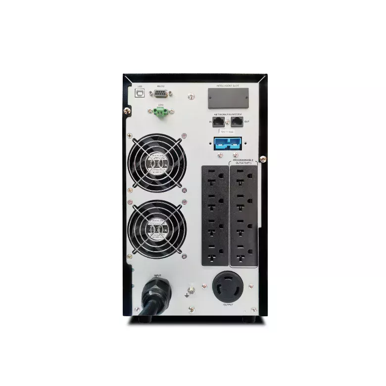 CDP UPO11-3AX. Capacidad de potencia de salida (VA): 3 kVA, Potencia de salida: 2400 W, Voltaje de entrada de operación (min): 60 V. Tipo de salida AC: NEMA 6-15R, NEMA 6–20R, Conector: NEMA L5-30P, Cantidad de salidas AC: 4 salidas AC. Tiempo típico de respaldo a carga completa: 8 min, Tiempo típico de respaldo a media carga: 18 min. Factor de forma: Compacto, Color del producto: Negro, Certificación: CE, TUV, cULus