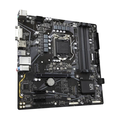 GIGABYTE B560M DS3H V2. Fabricante de procesador: Intel, Socket de procesador: LGA 1200 (Socket H5), Procesador compatible: Intel® Core™ i5, Intel® Core™ i7, Intel® Core™ i9. tipos de memoria compatibles: DDR4-SDRAM, Memoria interna máxima: 128 GB, Tipo de ranuras de memoria: DIMM. Interfaces de disco de almacenamiento soportados: M.2, SATA III. Tipo de interfaz ethernet: Gigabit Ethernet. Componente para: PC, Factor de forma de la tarjeta madre: Micro ATX, Familia del chipset: Intel