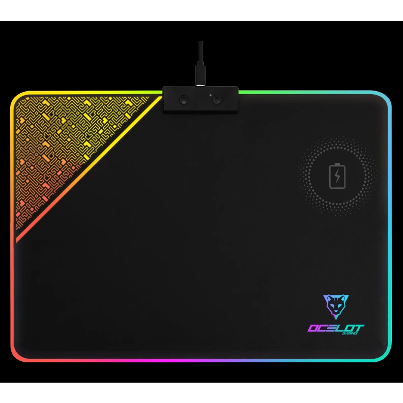 Ocelot Gaming OMPR01. Ancho: 350 mm, Profundidad: 250 mm. Color del producto: Negro, Coloración de superficie: Imagen, Color de luz de fondo: Rojo/Verde/Azul, Cojín de ratón para Juegos