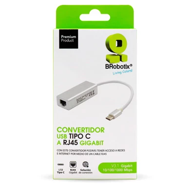 BRobotix 651879. Interfaz de host: RJ-45, Interfaz de salida: USB 3.2 Gen 2 (3.1 Gen 2). Color del producto: Plata, Blanco, Longitud máxima del cable: 0.15 m. Sistemas operativos Windows soportados: Windows 10, Windows 10 x64, Windows 7, Windows 8, Windows Vista. Ancho: 59 mm, Profundidad: 23 mm, Altura: 16 mm. Ancho del paquete: 59 mm, Largo del paquete: 23 mm, Alto del paquete: 16 mm
