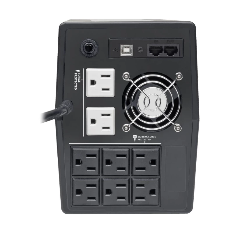 Tripp Lite OMNIVS1200LCD UPS interactivo de 1200VA 600W con 8 Tomacorrientes – AVR, 120V, 50Hz / 60Hz, LCD, USB, Torre. Topología UPS: Línea interactiva, Capacidad de potencia de salida (VA): 1.2 kVA, Potencia de salida: 600 W. Tipo de salida AC: NEMA 5-15R, Conector: NEMA 5-15P, Cantidad de salidas AC: 8 salidas AC. Tiempo típico de respaldo a carga completa: 2 min, Tiempo típico de respaldo a media carga: 12 min. Factor de forma: Tower, Color del producto: Negro, Material de la cubierta: Acrilonitrilo butadieno estireno (ABS). Certificados de cumplimiento: RoHS
