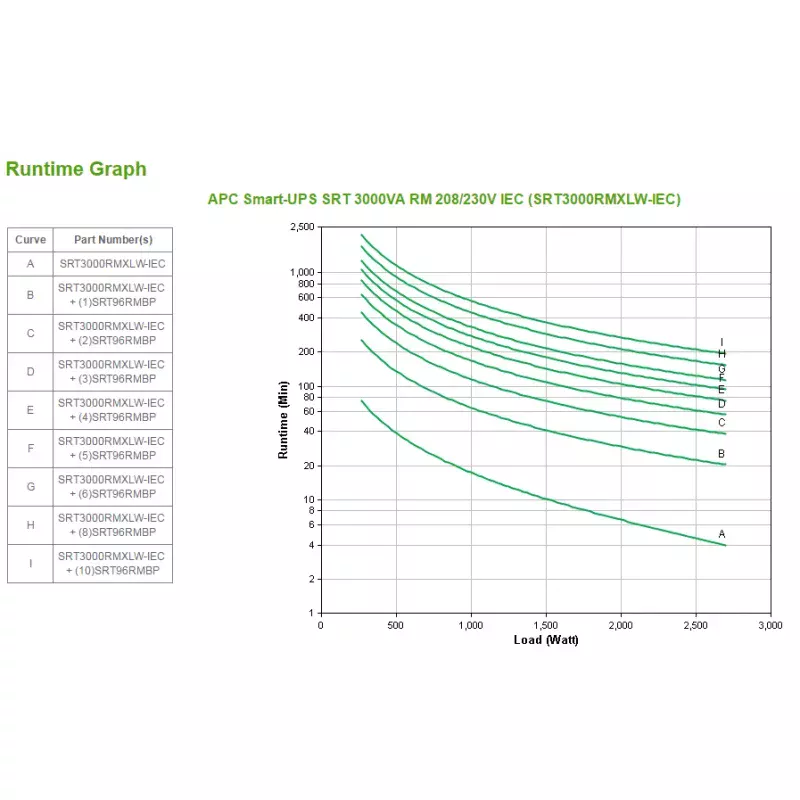 APC SRT3000RMXLW-IEC. Topología UPS: Doble conversión (en línea), Capacidad de potencia de salida (VA): 3 kVA, Potencia de salida: 2700 W. Tipo de salida AC: Acoplador C13, Acoplador C19, Conector: Acoplador C20, Cantidad de salidas AC: 8 salidas AC. Tecnología de batería: Sealed Lead Acid (VRLA), Capacidad de la batería: 505 VAh, Tiempo típico de respaldo a carga completa: 4 min. Factor de forma: Montaje en rack/Torre o Montaje en bastidor/Torre, Color del producto: Negro, Capacidad del rack: 2U. Certificados de cumplimiento: RoHS, Certificación: CE, CE Mark, EAC, EN/IEC 62040-1, EN/IEC 62040-2, RCM, VDE, REACH