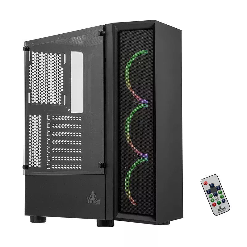 Yeyian YCH-ATAB-01BK. Factor de forma: Midi Tower, Tipo: PC, Color del producto: Negro. Ubicación de fuente de alimentación: Fondo. Ventiladores frontales instalados: 3x 120 mm, Diámetro de ventiladores frontales soportados: 120,140 mm, Diámetro de ventiladores traseros soportados: 120 mm. Tamaños de disco duro soportados: 2.5,3.5". Ancho: 200 mm, Profundidad: 390 mm, Altura: 446 mm