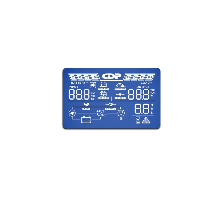 CDP UPO11-2RT kVA. Topología UPS: Doble conversión (en línea), Capacidad de potencia de salida (VA): 2 kVA, Potencia de salida: 1800 W. Tipo de salida AC: NEMA 5–15R, Conector: NEMA 5-20P, Cantidad de salidas AC: 8 salidas AC. Tecnología de batería: Plomo-ácido, Capacidad de la batería: 12 Ah, Voltaje de la pila: 7 V. Factor de forma: Montaje en rack/Torre o Montaje en bastidor/Torre, Color del producto: Negro, Material de la cubierta: Metal. Certificados de cumplimiento: RoHS