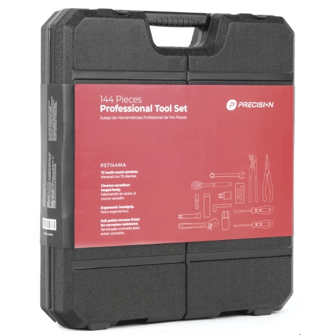 Precision Tools PST-144-MA. Materiales: Acero al carbón, Acero al cromo-vanadio, Color del producto: Negro, Acabado de la superficie: Cromo. Cantidad de herramientas: 144 herramientas