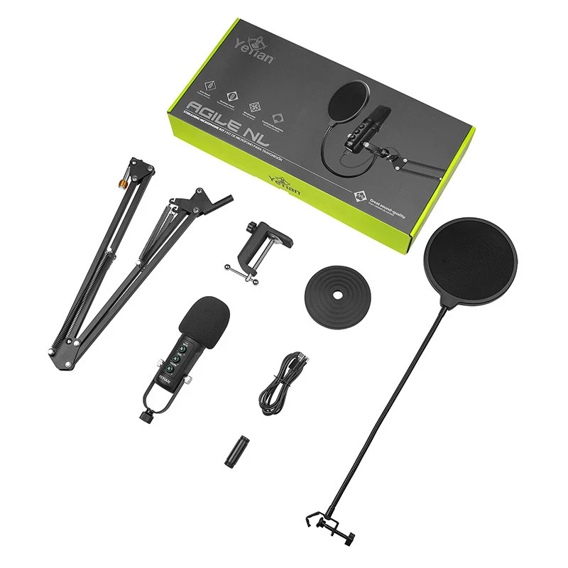 Incluye micrófono de transmisión, soporte de brazo de tijera, montura anti-choque de metal, filtro pop, filtro espuma, abrazadera de montaje en mesa, cable USB-B a USB-A. Se puede usar en una computadora PC o computadora portátil. Compatible con sistemas Windows y Mac para YouTube, juegos, grabación en estudio, discord, transmisión en vivo, podcasting, transmisión y videoconferencia.