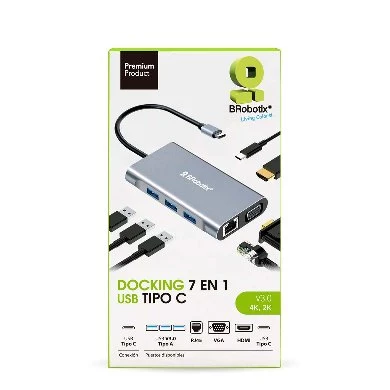 BRobotix 6001202. Tecnología de conectividad: Alámbrico, Interfaz de host: USB 3.2 Gen 1 (3.1 Gen 1) Type-C. Ethernet LAN, velocidad de transferencia de datos: 10,100 Mbit/s. Color del producto: Negro, Plata, Interfaces de concentradores: HDMI, RJ-45, USB 3.2 Gen 1 (3.1 Gen 1) Type-A, USB 3.2 Gen 1 (3.1 Gen 1) Type-C, VGA, Material de la cubierta: Aluminio. Ancho: 99 mm, Profundidad: 56 mm, Altura: 17 mm. Cantidad por paquete: 1 pieza(s)