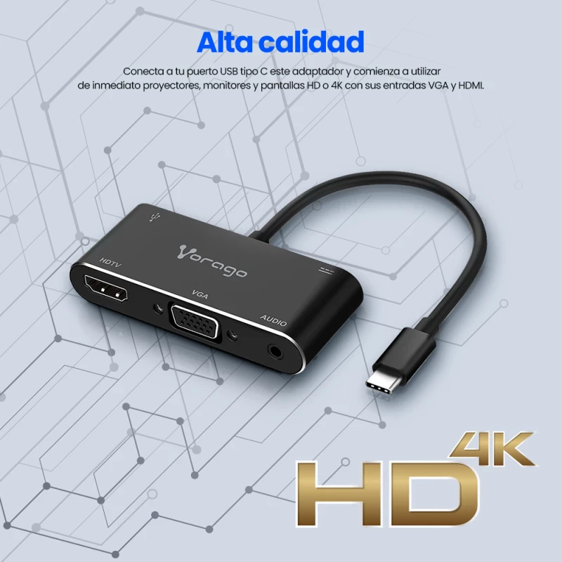Vorago ADP-350. Formatos gráficos soportados: 1920 x 1080 (HD 1080), 3840 x 2160, Formato de vídeo soportado: 2160p, 3840p. Color del producto: Negro, Tipo de cable: Round cable. Ancho: 125 mm, Profundidad: 15 mm, Altura: 63 mm. Tipo de empaque: Caja. Cantidad por paquete: 1 pieza(s), Contenido del paquete: Adapter, manual