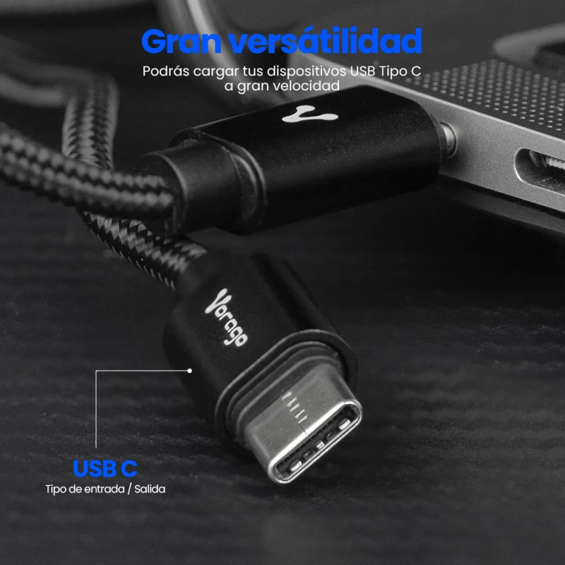Vorago CAB-124-BK. Longitud de cable: 1 m, Conector 1: USB C, Conector 2: USB C, Tipo de cable: Cable redondo