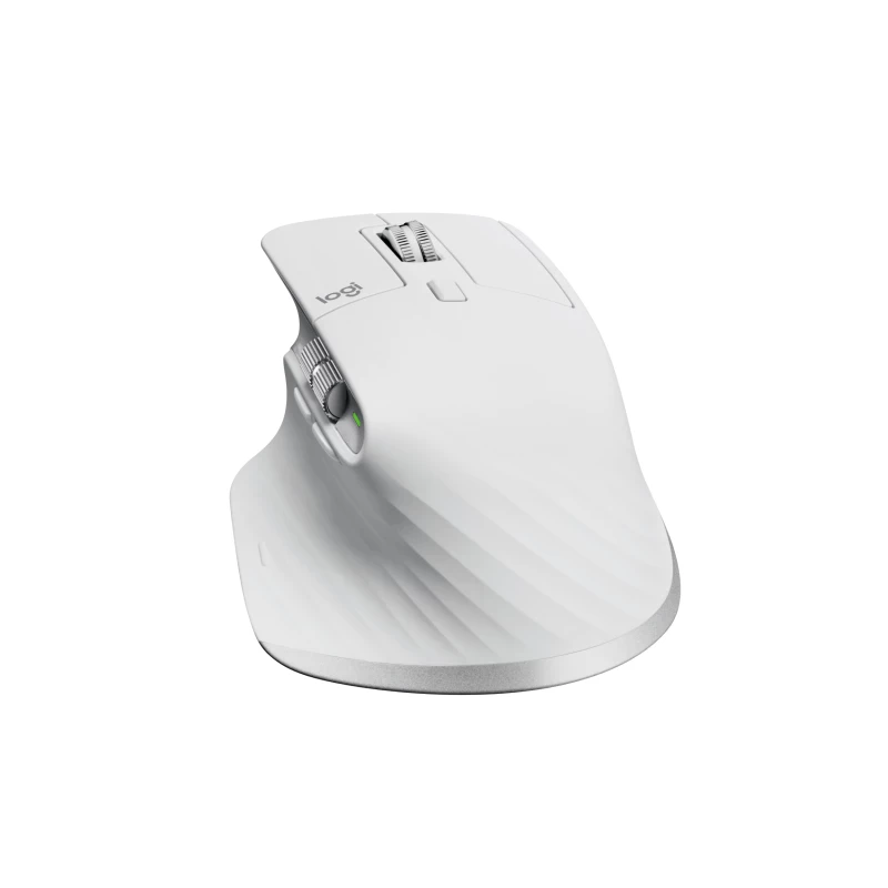 Logitech MX Master 3S. Factor de forma: Diestro. Tecnología de detección de movimientos: Óptico, Interfaz del dispositivo: RF inalámbrico + bluetooth, Resolución de movimiento: 8000 DPI, Tipo de botones: Botones presionados, Cantidad de botones: 7, Tipo de desplazamiento: Rueda. Fuente de energía: Baterías. Color del producto: Plata, Blanco