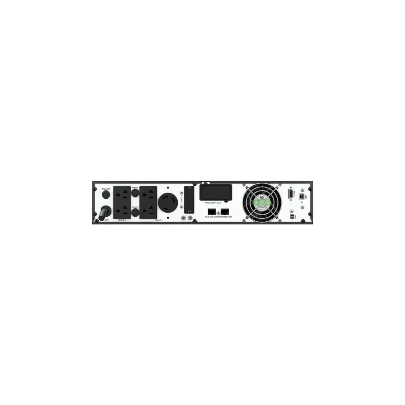 Panduit SmartZone. Topología UPS: Doble conversión (en línea), Capacidad de potencia de salida (VA): 3 kVA, Potencia de salida: 3000 W. Tipo de salida AC: NEMA 5–20R, NEMA L5-30R, Conector: NEMA L5-30P, Cantidad de salidas AC: 5 salidas AC. Tecnología de batería: Sealed Lead Acid (VRLA), Capacidad de la batería: 54 Ah, Voltaje de la pila: 72 V. Factor de forma: Montaje en rack/Torre o Montaje en bastidor/Torre, Color del producto: Negro, Capacidad del rack: 2U. Ancho: 440 mm, Profundidad: 600 mm, Altura: 86.5 mm