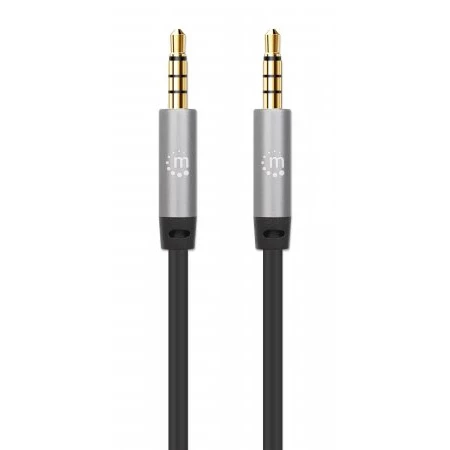 356015 Manhattan Cable Auxiliar de Audio Estéreo, 3,5mm, Macho, 3,5mm, Macho, 5 m, Negro, Plata