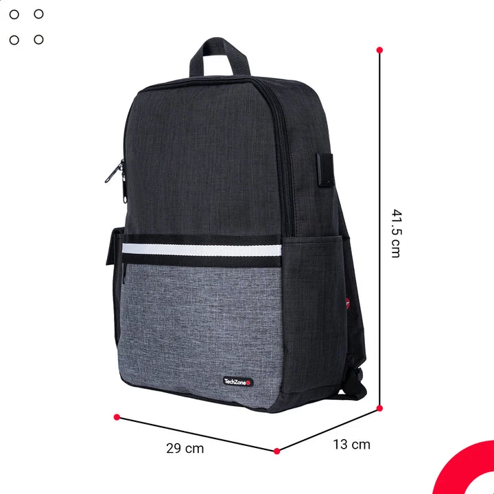 TechZone TZ21LBP01-A. Tipo mochila para la espalda: Mochila casual, Color principal del producto: Negro, Gris, Coloración: Monocromático. Ancho: 290 mm, Profundidad: 130 mm, Altura: 415 mm. Materiales: Nylon, Poliéster